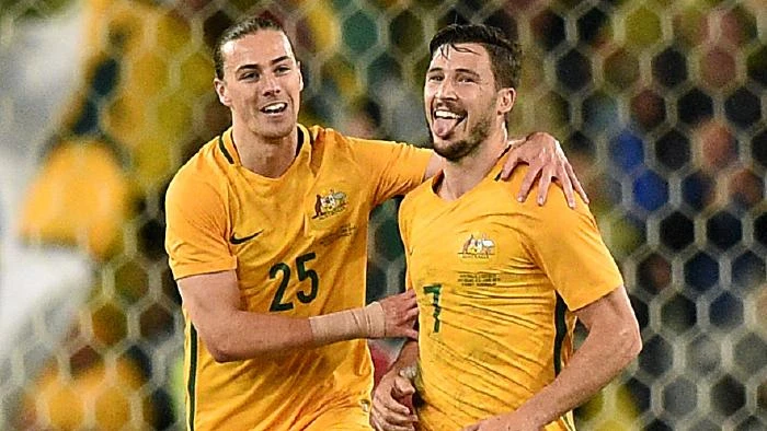 Matt Leckie (7) mở bàn cho Úc