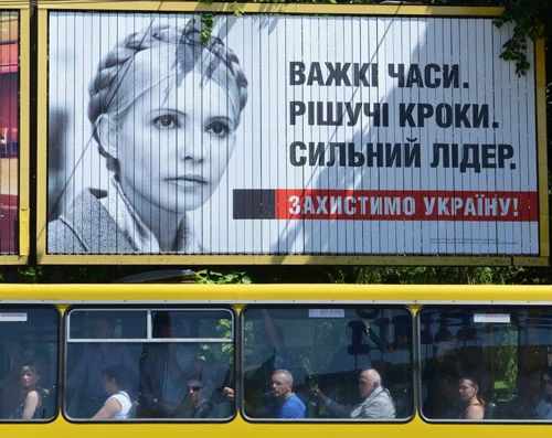 | Bảng quảng cáo vận động tranh cử của bà Yulia Tymoshenko -Ảnh: AFP |