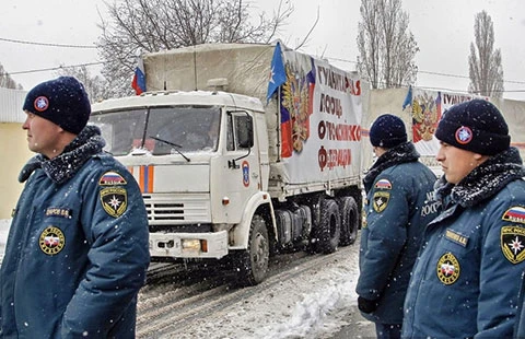 Ngày 30-11 (giờ địa phương), đoàn xe chở hàng viện trợ nhân đạo thứ tám của Nga đã đến Donetsk. Ảnh: AFP