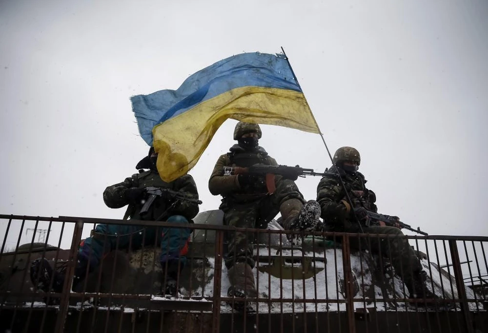 Các thành viên của lực lượng vũ trang Ukraine trên một chiếc xe quân sự gần Debaltseve, miền đông Ukraine, năm 2015. Ảnh: REUTERS