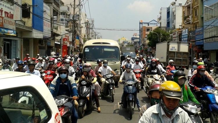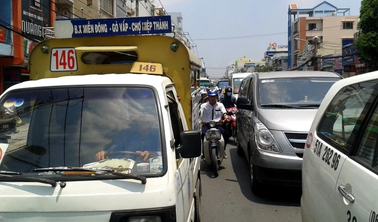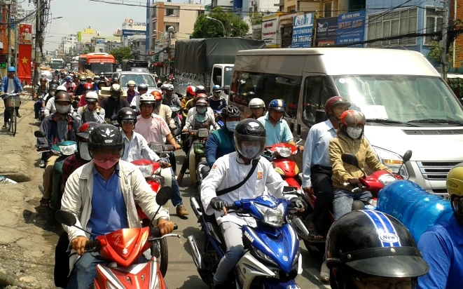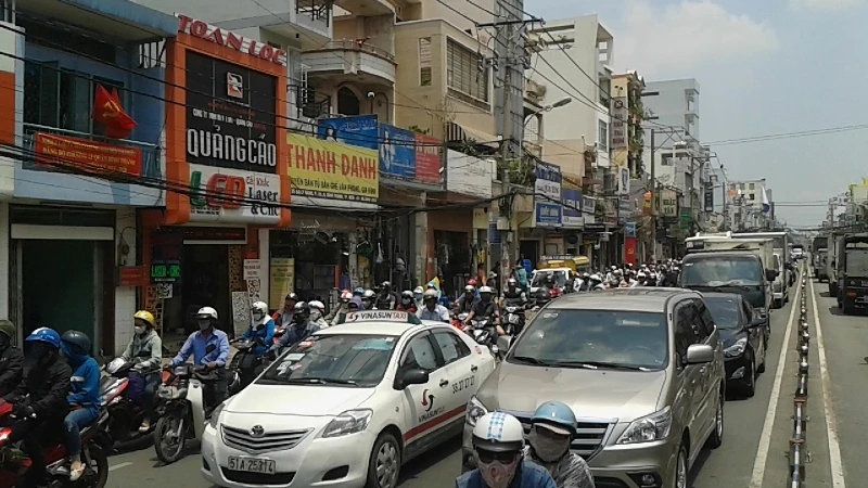 Giao thông trên đường Bạch Đằng (phường 15, quận Bình Thạnh) ùn tắc hàng giờ liền - Ảnh Phước Tĩnh