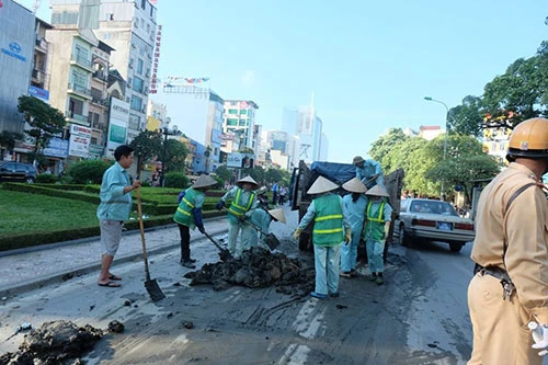 Ngay sau đó, xe vệ sinh môi trường cùng các công nhân đã được huy động tới địa điểm nhanh chóng di chuyển chỗ bùn đất để đảm bảo giao thông.