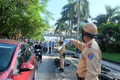 Nhận được tin báo, lực lượng chức năng nhanh chóng có mặt, để phân luồng giao thông, hướng dẫn người đi đường tránh nguy hiểm và ùn tắc. Tuy nhiên, đây là tuyến đường chính, lượng người tham gia giao thông qua lại đây khá đông, cảnh ùn tắc đã diễn ra trong một thời gian ngắn.