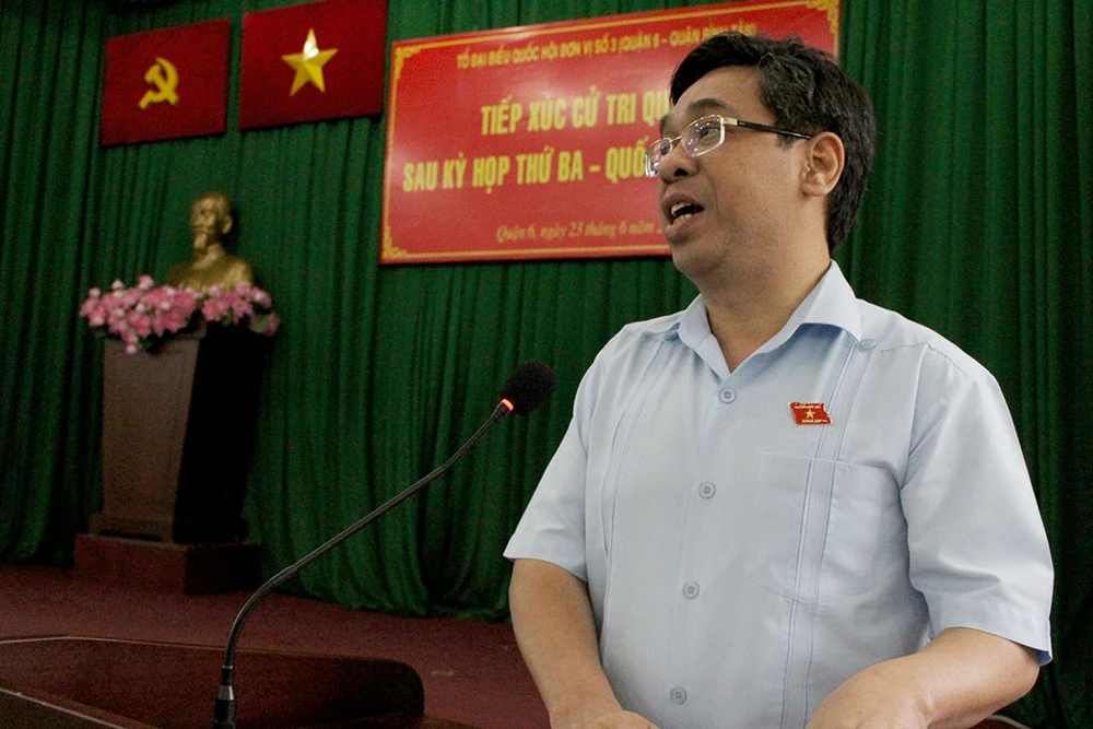 ĐB Nguyễn Phước Lộc bày tỏ ghi nhận trước nhiều ý kiến xác đáng của cử tri quận 6. Ảnh: LÊ THOA