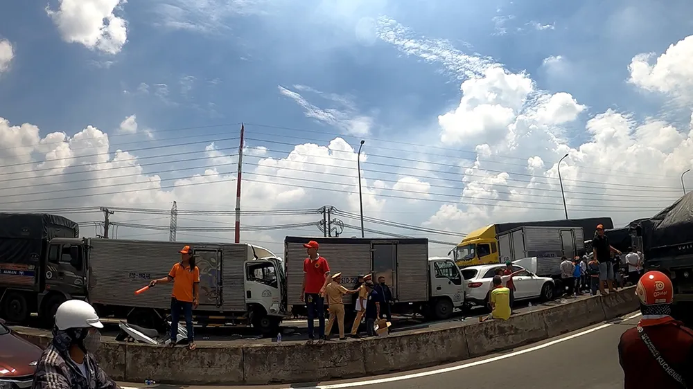 Trưa 1-6, vụ tai nạn liên hoàn trên cầu Bình Thuận khiến một người bị thương. Ảnh: HT
