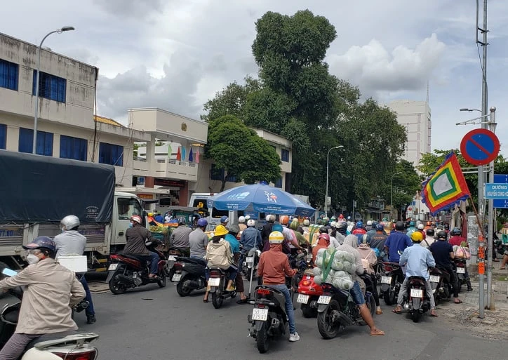Theo ghi nhận, từ 13 giờ 30 đến gần 15 giờ tại chốt kiểm soát dịch COVID-19 đối diện Công an quận Bình Thạnh, đường Phan Đăng Lưu, hàng ngàn phương tiện bị ùn ứ do được hướng dẫn đăng ký khai báo di chuyển nội địa