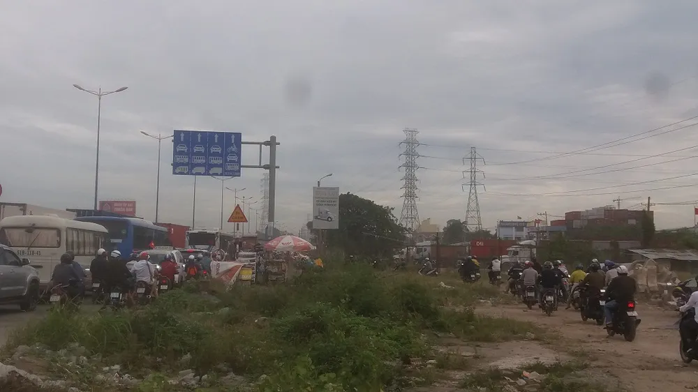 Ngay từ chân cầu Rạch Chiếc, nhiều xe đã phải quay đầu hoặc dừng lại để chờ dòng người trên cầu di chuyển dần đi. Tình trạng này kéo dài trong một tiếng đồng hồ, dòng người di chuyển khó nhọc. Xe máy, xe buýt, container... nối đuôi nhau thành hàng dài.