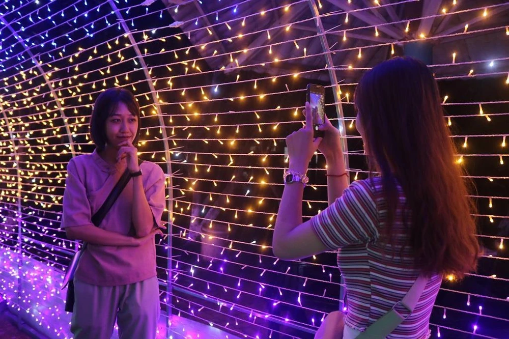 Với hàng trăm mô hình ánh sáng được tạo nên từ hàng triệu chiếc đèn led, lễ hội ánh sáng trở thành “thiên đường sống ảo” của người dân phố núi những ngày cuối tuần.