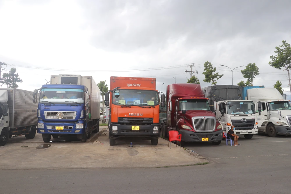 Phương tiện vận tải hàng hóa vẫn đang nằm chờ. Ảnh: CHÂU ANH