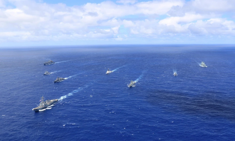 Tàu chiến Trung Quốc tập trận ở Biển Đông hồi tháng 6-2019. Ảnh: AP