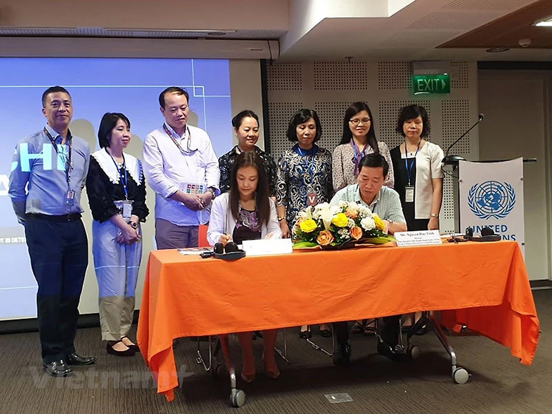 Đại diện của UNFPA và Bộ Y tế ký kết biên bản bàn giao. Ảnh: TG/Vietnam+