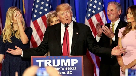 Tỉ phú Donald Trump đã đọc bài diễn văn chiến thắng tại Spartanburg (ảnh). Đây là lần dẫn đầu thứ hai của ông sau cuộc bầu cử sơ bộ ở New Hampshire ngày 9-2.