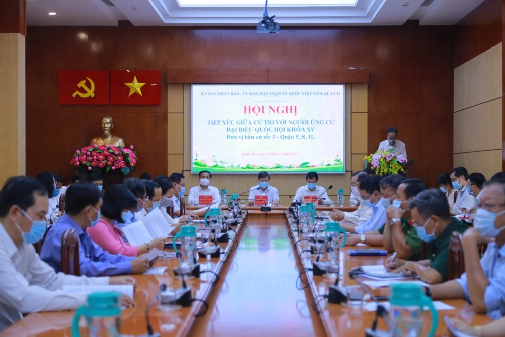 Ngày 13-5, các ứng cử viên đại biểu Quốc hội khóa XV đơn vị bầu cử số 3 TP.HCM đã tham gia hội nghị tiếp xúc giữa cử tri với người ứng cử đại biểu Quốc hội khóa XV tại quận 11, TP.HCM.