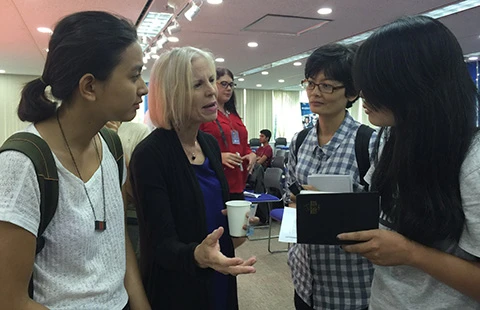 Bà Marie Watson, người sáng lập tổ chức Home of Hope, chia sẻ với những người tham dự tọa đàm. Ảnh: Q.TRANG