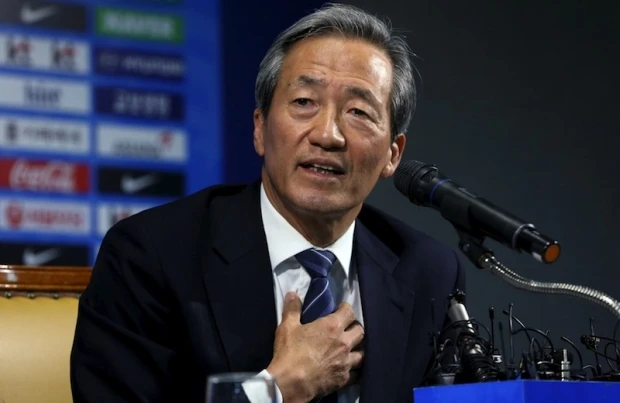 Khỏi nói về bản thành tích của cựu danh thủ Pháp Platini, nhưng ông Chung đang là một tỷ phú (tài sản ước tính 1,2 tỷ USD) là con trai thứ sáu của người sáng lập viên tập đoàn công nghiệp nặng lừng danh Huyndai của Hàn Quốc và hiện nay ông Chung là một trong những cổ đông chiến lược của Huyndai. Bản thân ông Chung xuất thân trong gia đình tỷ phú và danh gia vọng tộc. Ông Chung tốt nghiệp ĐH Công Nghệ Johns Hopkins của Mỹ, thuộc Viện Công nghệ Massachusetts, ĐH Quốc gia Seoul, 17 năm làm Phó Chủ ịch FIFA và cũng chừng ấy năm là Chủ tịch LĐBD Hàn Quốc.