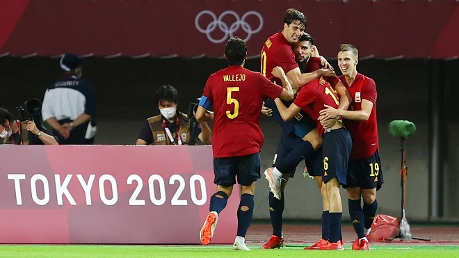 Gáo nước lạnh khiến Olympic Tây Ban Nha bừng tỉnh. Họ bắt đầu triển khai một lối chơi mạnh lạc, những đường chuyền cũng được các cầu thủ nắn nót hơn. Đang miệt mài tìm đường vào khung thành đối thủ, Tây Ban Nha bất ngờ có cơ hội sau sai lầm của hậu vệ trẻ Juan Miranda, Dani Olmo là người có mặt đúng thời điểm, tung cú đệm bóng nhanh như sóc gỡ hòa cho đội nhà.