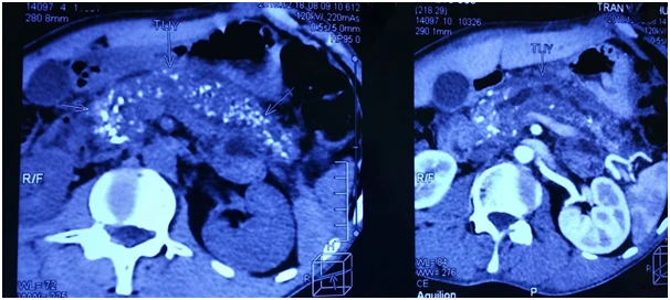 Gần đây, bệnh nhân đã nhập BV Hoàn Mỹ Sài Gòn điều trị. Kết quả làm các xét nghiệm máu, chụp cắt lớp vi tính cho thấy hình ảnh viêm tụy mạn, sỏi ống tụy vùng đầu tụy, vôi hóa toàn bộ tuyến tụy, ống tụy giãn 10 mm từ đầu tụy đến đuôi tụy.