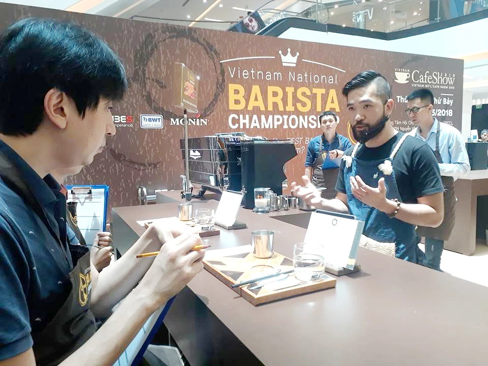 Thi pha chế cà phê vòng loại trước khi vào vòng chung kết tại Cafe show 2018
