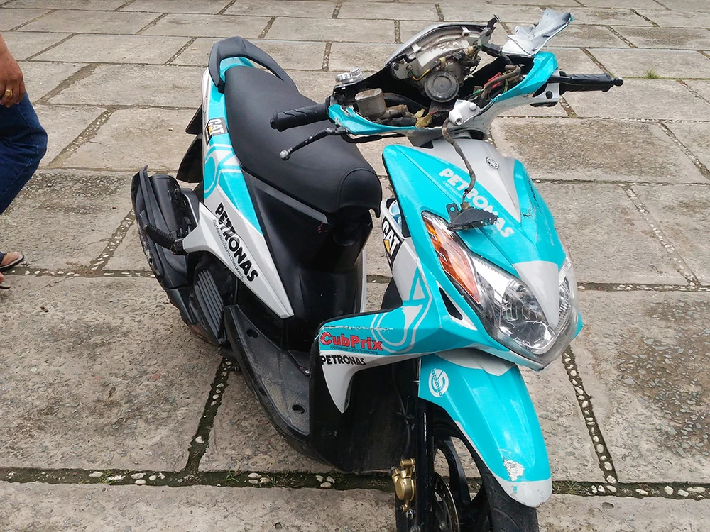 Tuy nhiên, dù bất ngờ nhưng người đàn ông vẫn nhanh chóng túm được Tuyền khiến nam thanh niên ngã nhào, chiếc xe theo đà lao văng vào lề đường, bể nát phần đầu.