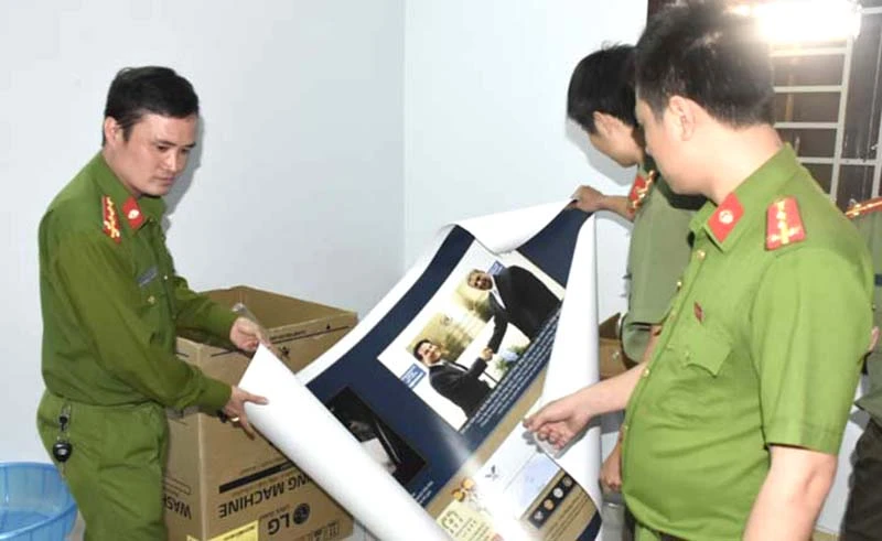 Công an tiến hành lập biên bản với Mai Văn Hùng và thu giữ nhiều tài liệu liên quan đến việc truyền đạo trái pháp luật.
