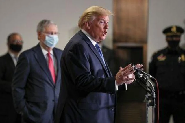 Tổng thống Mỹ Trump tại cuộc gặp với các thượng nghị sĩ đảng Cộng hòa để thảo luận về COVID-19 tại thủ đô Washington. Ảnh: Channel News Asia