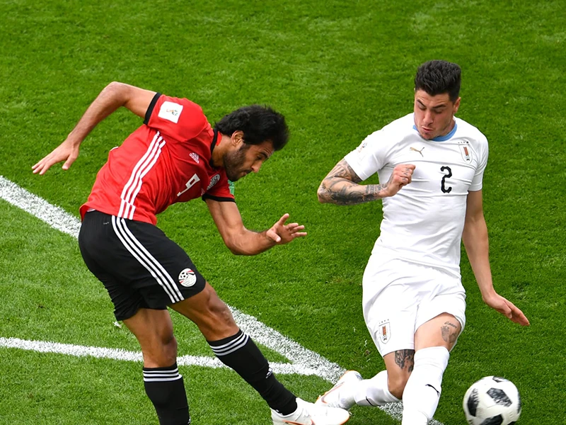 Ai Cập chơi dàn trải khắp mặt sân, chơi rất tỉnh và đủng đỉnh nhưng tập trung cao độ. Họ đối phó với “khẩu pháo hai nòng” Suarez - Cavani bằng một hàng phòng ngự dày nhưng không quá rát và cũng không chơi kiểu triệt con mồi với lối đá phản thể thao.
