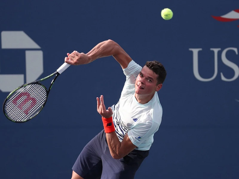 Milos Raonic (Canada) đối đầu với Ryan Harrison (Mỹ) tại US Open năm 2016.