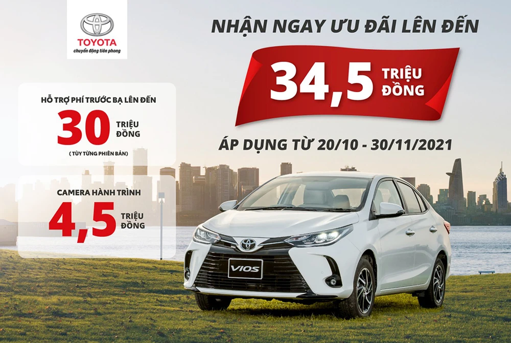 Đó là nội dung của chương trình “Tưng bừng ưu đãi, vạn lời tri ân” của Toyota Việt Nam triển khai dành cho khách hàng mua xe Vios, áp dụng từ nay đến ngày 30-11-2021.