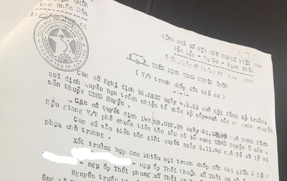 Tòa hủy toàn bộ quyết định này của UBND quận Ô Môn. Ảnh: NN