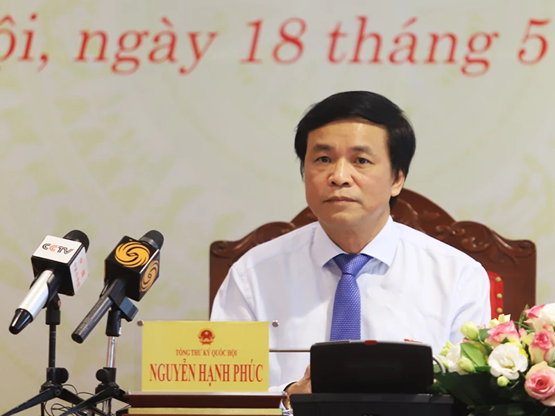 Chiều 18-5, Tổng thư ký Quốc hội (QH) Nguyễn Hạnh Phúc chủ trì cuộc họp báo thông tin chương trình dự kiến kỳ họp thứ 9, QH khóa XIV. PV các báo, đài đặt nhiều câu hỏi liên quan đến vụ án Hồ Duy Hải, mức khởi điểm chịu thuế thu nhập cá nhân (TNCN), dự án cao tốc Bắc-Nam và nhiều vấn đề khác.