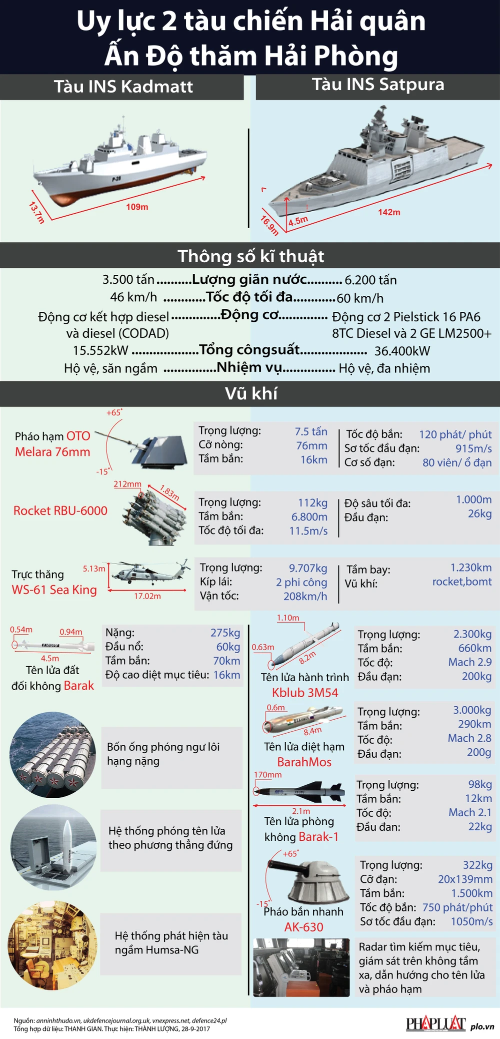 (PLO)- Mới đây, hai tàu Hải quân Ấn Độ INS SATPURA và INS KADMATT với 65 sĩ quan và 580 thuỷ thủ đã cập cảng Chùa Vẽ, Hải Phòng và có chuyến thăm tại thành phố này.