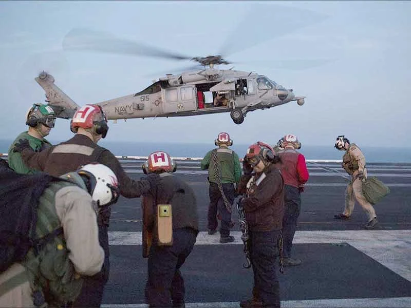 Cuối năm 2014, khi tổ chức Nhà nước Hồi giáo tự xưng (IS) tiến quân như vũ bão về thủ đô Baghdad (Iraq), USS Carl Vinson cũng được chọn làm lá cờ đầu cho chiến dịch không kích phát động bởi cựu Tổng thống Barack Obama. Tờ The New York Times thời điểm đó ghi nhận mỗi ngày có gần 20 chiếc F-18 thay phiên nhau cất cánh từ USS Carl Vinson dội mưa bom vào lực lượng khủng bố. Với hơn 5.200 thủy thủ và sĩ quan trên tàu, thay quân thường xuyên 10 tháng/lần, USS Carl Vinson trở thành pháo đài bất khả chiến bại sừng sững giữa vùng Vịnh. Cho đến thời điểm được thay thế bởi tàu sân bay USS Theodore Roosevelt vào giữa năm 2015, USS Carl Vinson đã thực hiện hơn 2.300 chuyến bay tác chiến, gần 9.500 máy bay đã đáp lên boong tàu và đã ném hơn 800 quả bom vào các mục tiêu khủng bố, theo Navy Times.
