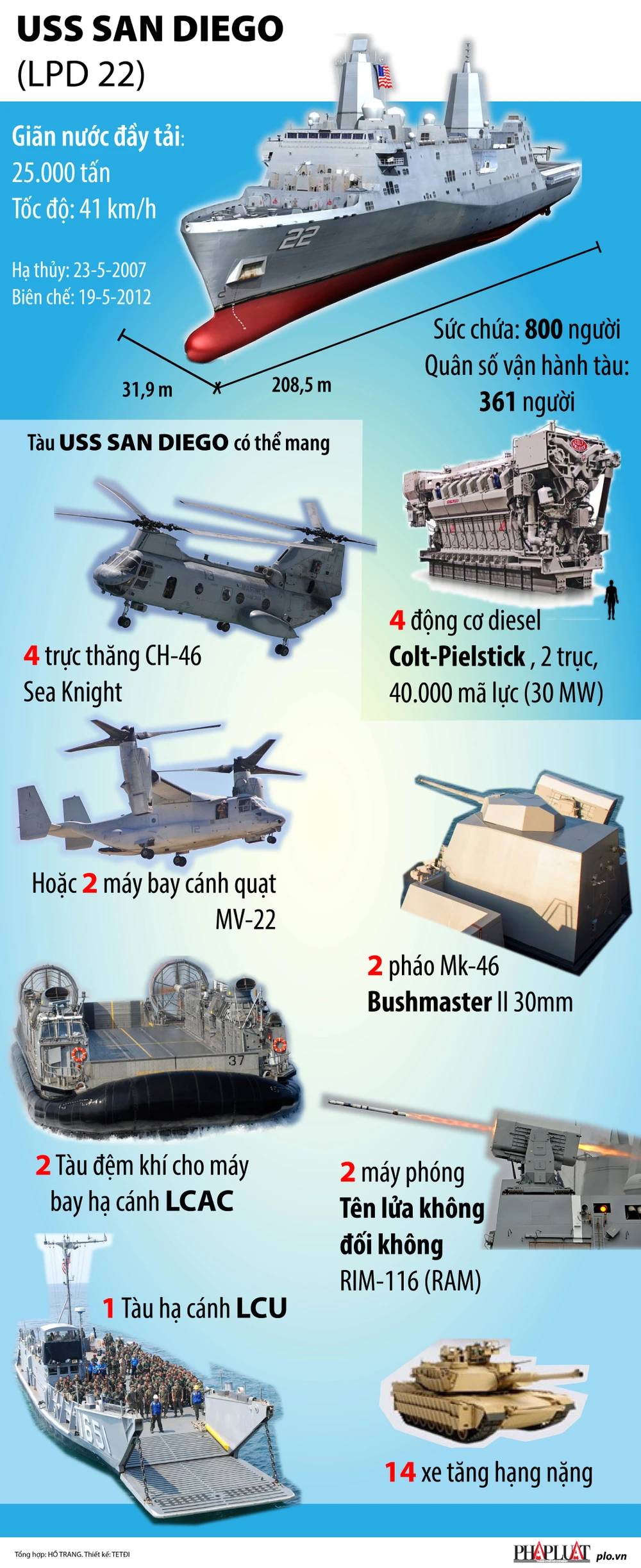 tàu Hải quân Hoa Kỳ USS San Diego (LPD 22) đã cập Cảng Quốc tế Cam Ranh trong chặng dừng kỹ thuật thường lệ. San Diego là tàu vận tải đổ bộ đường biển có khả năng chuyên chở thuỷ quân lục chiến cùng thiết bị. Tàu được được đưa vào biên chế Hải quân Hoa Kỳ năm 2012 và là chiếc thứ 6 thuộc lớp tàu chiến đổ bộ đường biển San Antonio.
