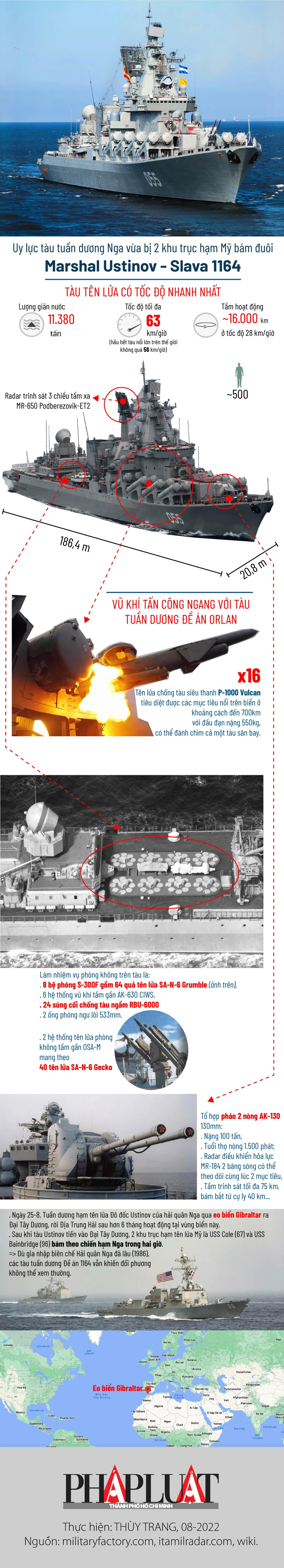 Uy lực tàu tuần dương tên lửa Đô đốc Ustinov của Nga vừa bị 2 khu trục hạm Mỹ bám đuôi