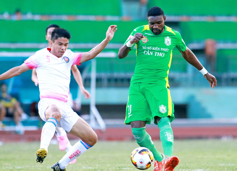 Cựu cầu thủ Cần Thơ, Nsi (trái) hiện bị đội bóng cũ đòi lại khoản lót tay trị giá 50.000 USD.