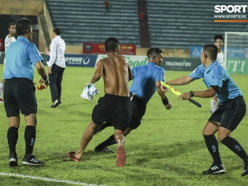 Mãi đến khi lực lượng cảnh sát cơ động và lực lượng an ninh làm nhiệm vụ che chắn thì các trọng tài mới bước được vào đường hầm. Phải chịu đựng gần hai tiếng bị “giam” tại sân Thiên Trường, các trọng tài mới về được khách sạn an toàn.