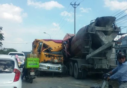 Theo các nhân chứng, vào thời điểm trên tại đường đê Nguyễn Khoái, đoạn gần Nhà máy gốm xứ Thanh Trì, thuộc huyện Thanh Trì (Hà Nội) đã xảy ra một vụ tai nạn giữa xe tải mang biển kiểm soát Hà Nội và một xe bồn trộn bê tông chạy hướng ngược chiều. Sau cú va chạm, hai tài xế trọng thương và được đưa đi cấp cứu.
