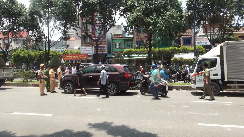 Trưa 9-5, xe tải loại 1,7 tấn biển số TP.HCM và ô tô bảy chỗ biển số tỉnh Bến Tre chạy trên đường Trường Chinh theo hướng ra ngã tư An Sương.