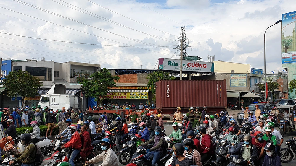 Khoảng 13 giờ 30 ngày 14-9, người đàn ông khoảng 40 tuổi điều khiển xe máy biển số Tây Ninh chở theo vợ khoảng 35 tuổi chạy trên quốc lộ 1 theo hướng từ quận Thủ Đức về quận 12. Khi đến cầu vượt Tân Thới Hiệp (quận 12, TP.HCM), người này cho phương tiện rẽ phải vào đường Lê Văn Khương thì va chạm với xe container biển số TP.HCM.
