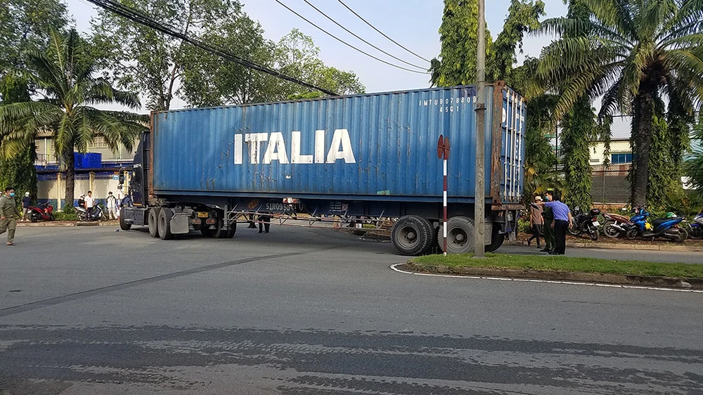 Khi đến giao lộ đường số 2 (quận Bình Tân, TP.HCM), tài xế cho xe container rẽ phải vào đường này thì xảy ra va chạm với xe máy 37G1-824.22 do anh Nguyễn Đình Tr. (23 tuổi, quê Nghệ An) cầm lái.