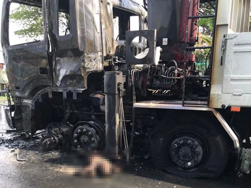 Hiện trường vụ tai nạn khiến người đàn ông bị cháy và tử vong