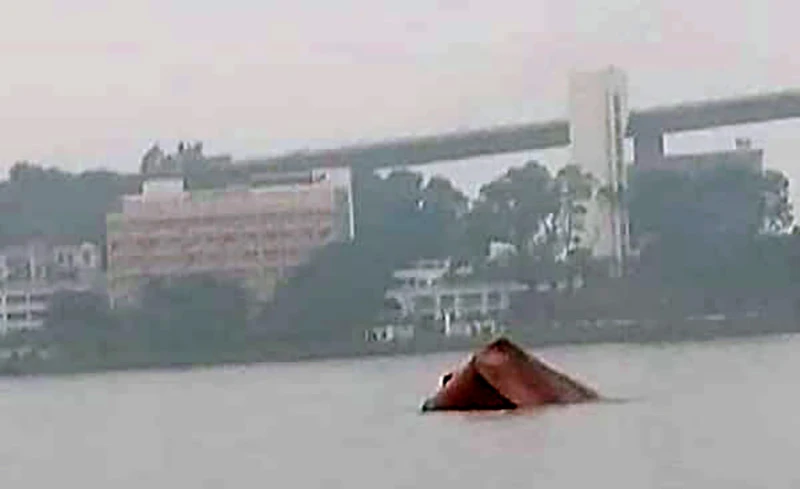 Hiện trường vụ tai nạn với một phần con tàu bị gãy.
