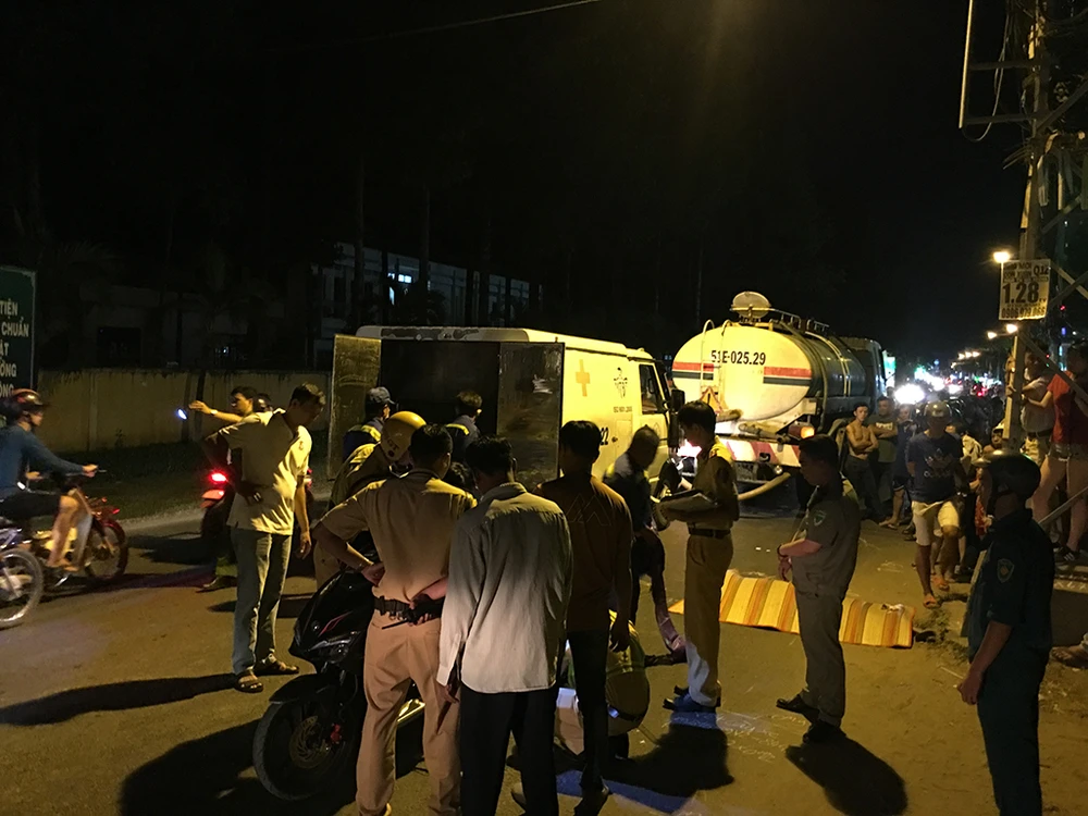 Cú va chạm khiến nạn nhân bị bánh xe bồn cán phải, tử vong tại chỗ. Chiếc xe bồn chạy thêm vài mét mới dừng lại.