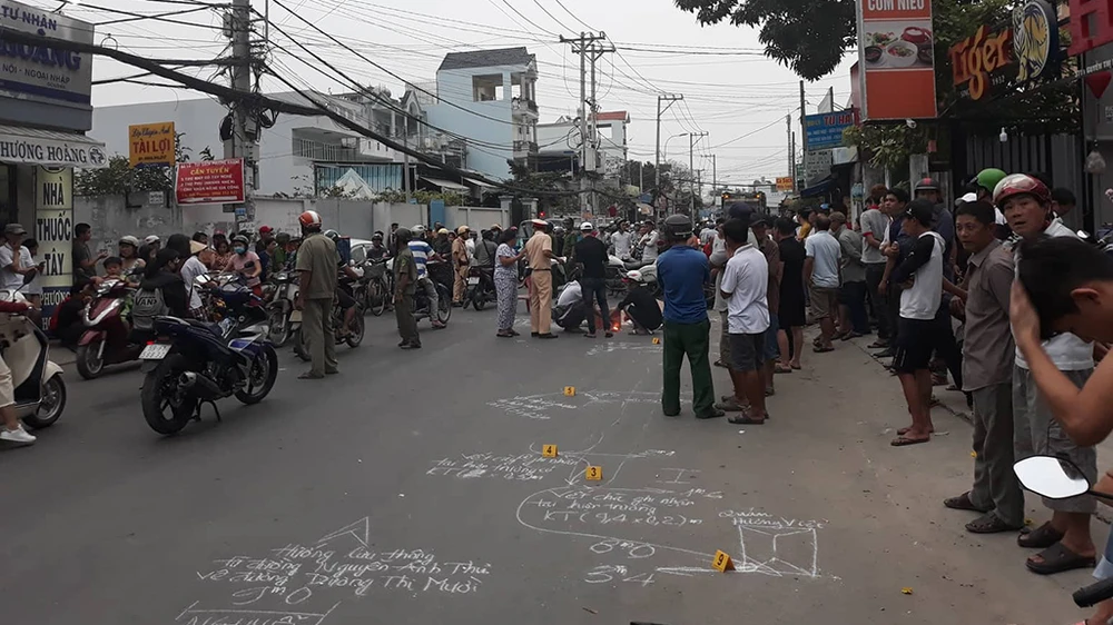 Ghi nhận tại hiện trường, chiếc xe máy nằm cạnh thi thể hai nạn nhân, nhiều vết cày xuất hiện trên mặt đường; giao thông qua khu vực gặp nhiều khó khăn.