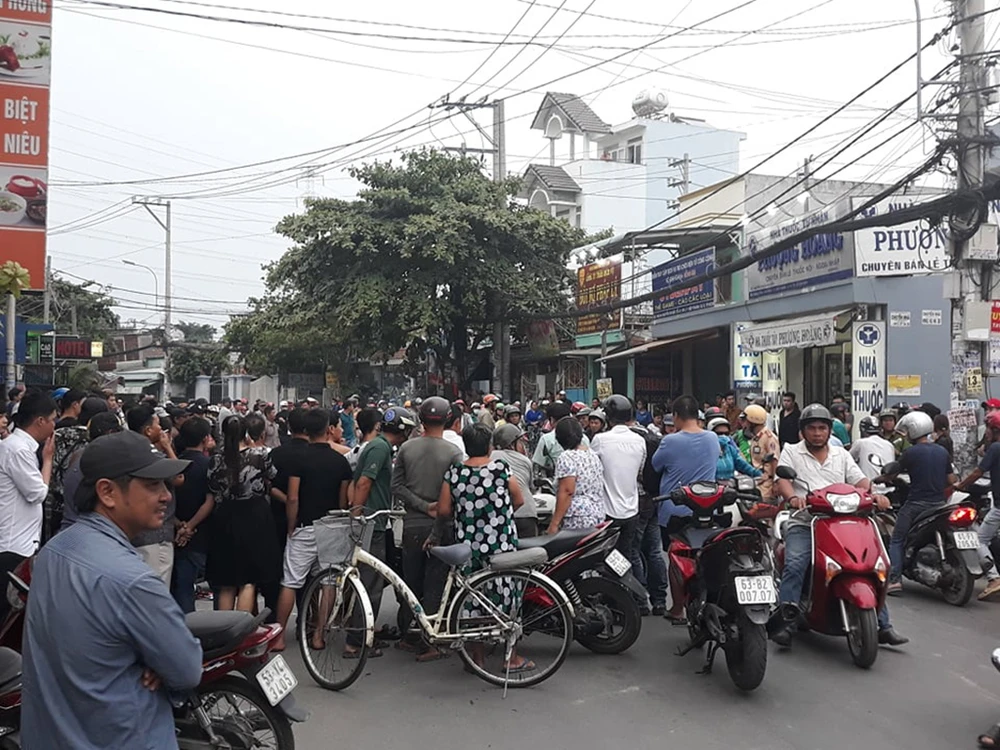 Rất đông người dân theo dõi vụ việc, giao thông qua khu vực ùn ứ. Ảnh HT.