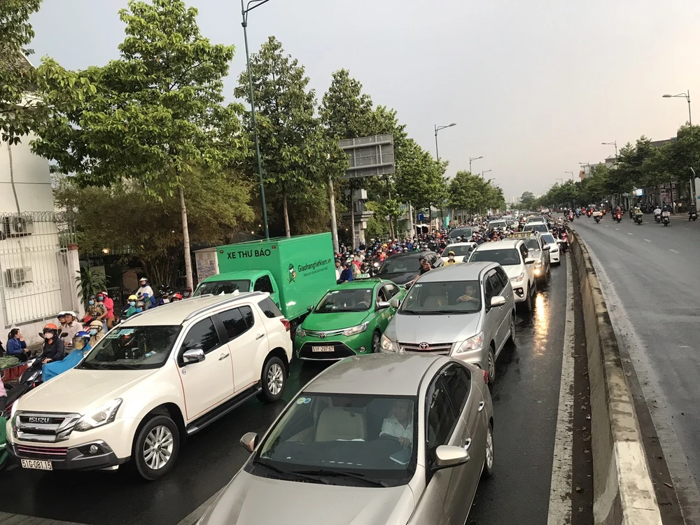 Ảnh hưởng của vụ tai nạn khiến giao thông trên đường Phạm Văn Đồng ùn ứ nghiêm trọng trong trời mưa. Vụ việc đang được Công an quận Thủ Đức điều tra làm rõ.