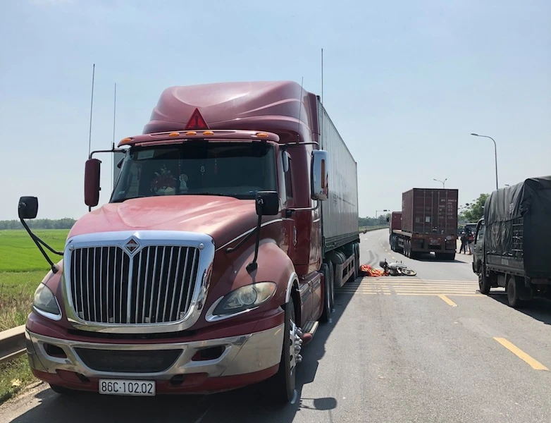 Va chạm với xe đầu kéo, người phụ nữ chết tại chỗ. Ảnh: CTV