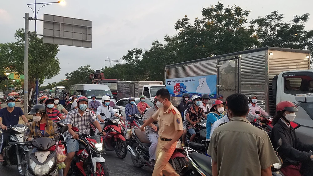 Ảnh hưởng từ tai nạn khiến giao thông qua khu vực ùn ứ. Ảnh: HT