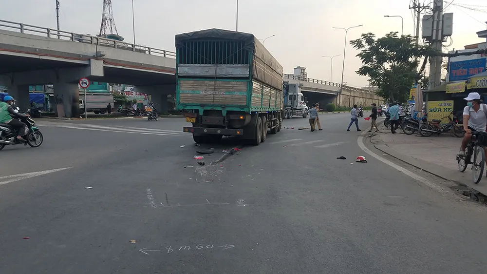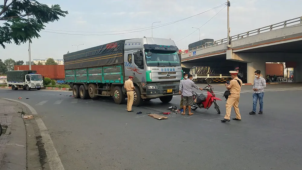 Chiều tối ngày 10-12, Đội CSGT An Sương, Phòng CSGT Đường bộ Đường sắt, Công an TP.HCM hoàn tất công tác xử lý hiện trường, điều tra vụ tai nạn giữa xe máy và xe tải nặng khiến một phụ nữ trọng thương.