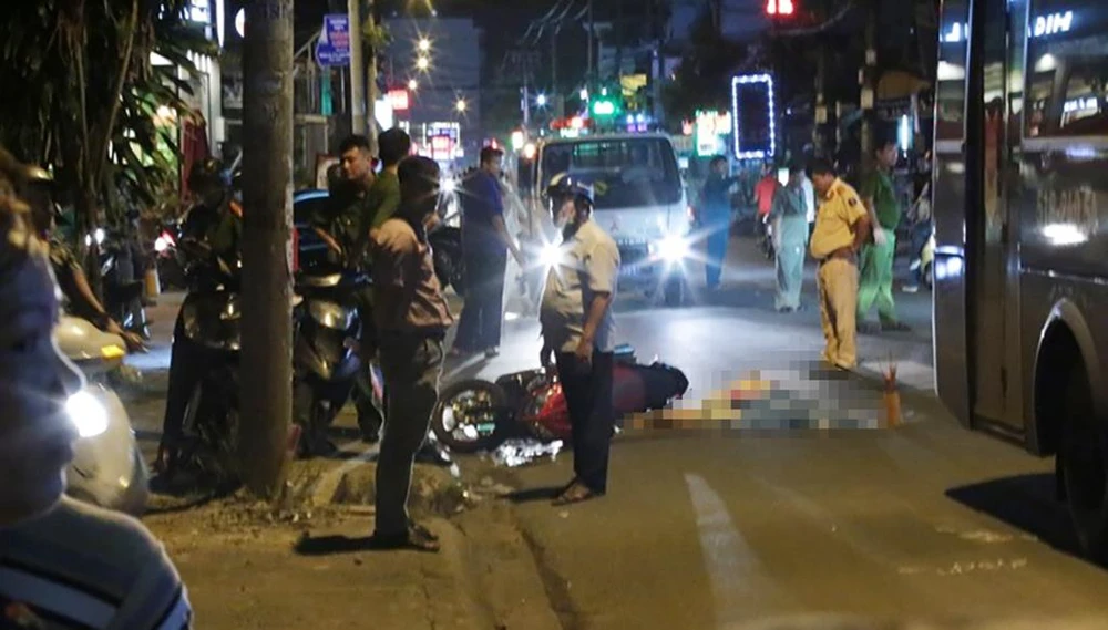 Tại hiện trường, xe máy của nạn nhân nằm sát lề đường, cạnh đó là thi thể của nạn nhân. Do là giờ cao điểm nên vụ tai nạn đã khiến giao thông tại khu vực bị ùn ứ.